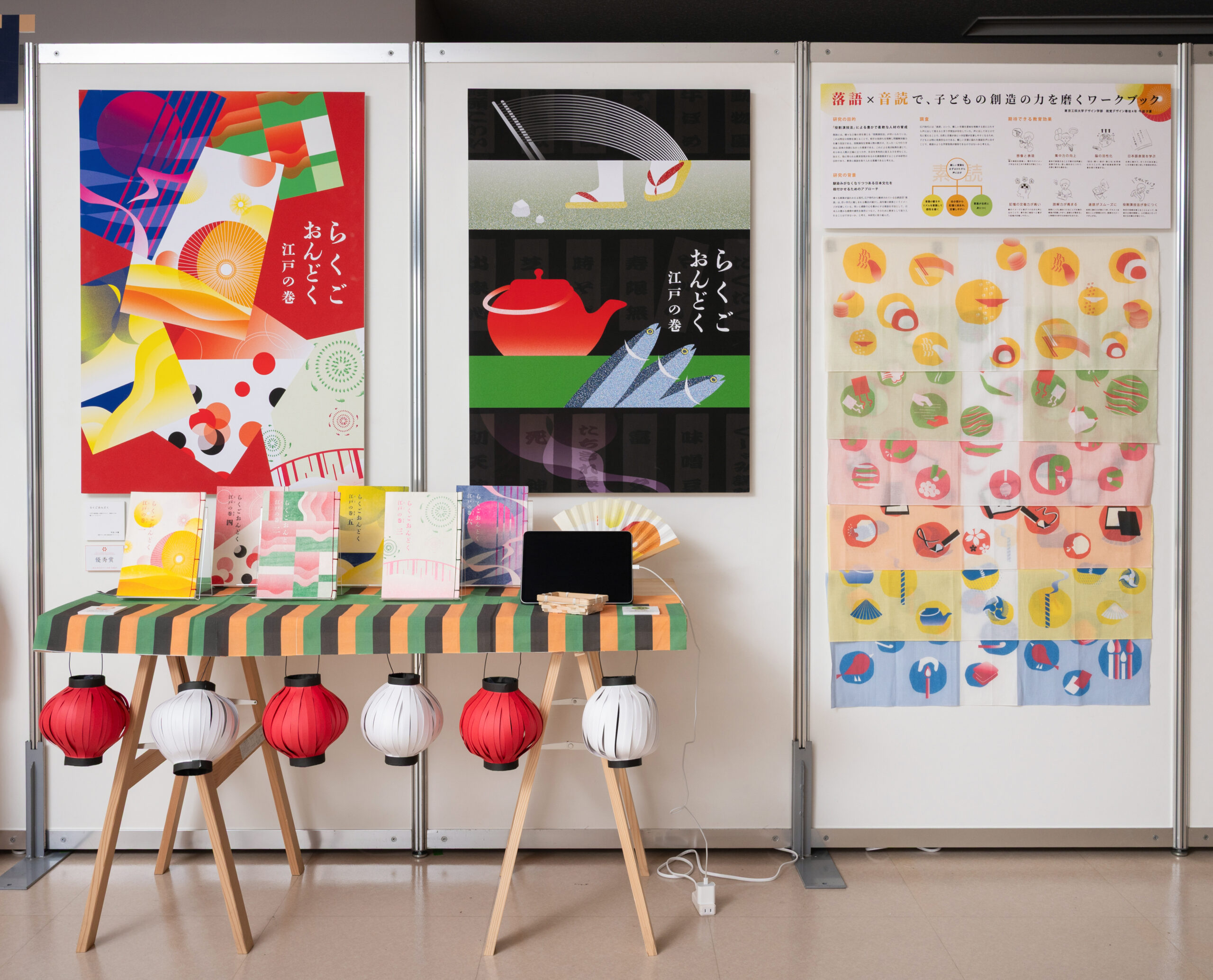 Six volumes were produced for all elementary school grades. To allow children to engage while feeling the atmosphere of Edo, the booklets use Japanese paper and traditional Japanese binding. Hand towels and folding fans are provided as props.